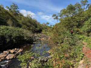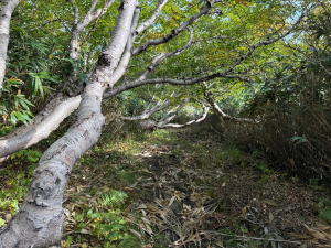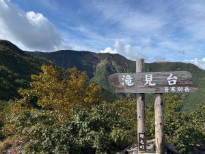 滝見台(7合目) 9:08 ヒグマに注意の6合目ではヒグマに遭遇せず。でも登山道に1か所雨で飛び散らかしたヒグマの糞があったのでいるのは確かかも。 |