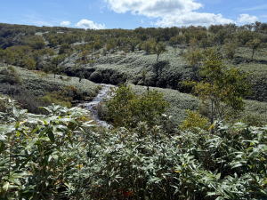 下山開始 11:26 頂上でゆったりまったり。帰りたくない気分の中、そうは言っても3時間半の下りが待っています。残り少ない後ろ髪を引かれながら天上の楽園を後にします。 |