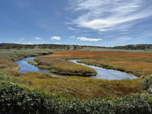 草紅葉の湿原は、吸血系の虫もおらず、 逝きそびれたヤンマや南への旅立ち準備に忙しい小鳥がちらほら。 強い風もココでは絵を盛り立てる役者の一人です。 |