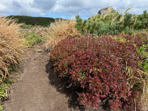 5合目 8:30 それなりにしんどくはあるのよ。でも前回到達した8合目までは頑張らなくちゃ、この数ヶ月の足上げ体操の成果を見なくちゃ。 |