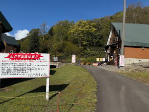 雨竜沼登山口 8:25 9月24日 宿を6時に出て移動。毎度のことながら、ここにもヒグマ看板。途中の車道にも大きな糞が。こんなに痕跡はあるのに、一度も姿を見かけたことが無い。これはこれでラッキー? |