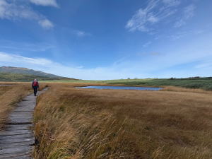 下山 13:47 湿原の周遊を楽しみ、登山口に着いて南暑寒荘の管理人と一言二言言葉を交わし、今日の宿泊先である新十津川町の施設へ移動しました。 |